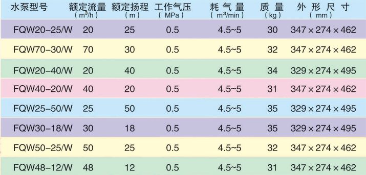 FQW型礦用風動潛水泵(原BQF、FWQB型)是我公司自行研制開發的一種新產品,本產品采用轉子與泵體同軸聯結的機械產品,采用立式機構、下泵式。執行標準:Q/JNAT001-2010。煤礦用風動潛水泵結構緊湊,移動、裝拆、維修方便。泵體渦道采用節能水力模型,葉輪特殊設計。該水泵具有排污水能力強,流量大,揚程高等優點。FQW型系列水泵適用于含有瓦斯與煤塵爆炸危險場所排水作業,可廣泛用于煤礦井下任何作業面,輸送含有煤粉,泥沙顆粒的地下水,使用安全、可靠,并有效地改善現場空氣質量。